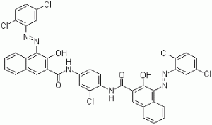 InChI: InChI = 1 / C40H23Cl5N6O4 / c41-22-9-12-29 (43) 33 (17-22) 48-50-35-25-7-3-1-5-20 (25) 15-27 ( 37 (35) 52) 39 (54) 46-24-11-14-32 (31 (45) 19-24) 47-40 (55) 28-16-21-6-2-4-8-26 ( 21) 36 (38 (28) 53) 51-49-34-18-23 (42) 10-13-30 (34) 44 / h1-19,52-53H, (H, 46,54) (H, 47,55)