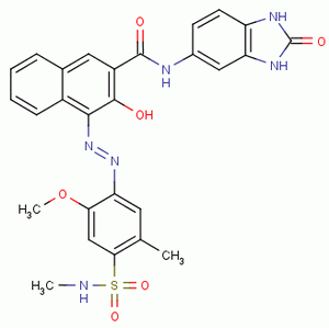 Kaŝnomo:2-Naftalenecarboxamido, N- (2,3-dihidro-2-oxo-1H-benzimidazol-5-il) -3-hidroksi-4 - ((2-metoxi-5-metil-4 - ((metilamino) sulfonilo) fenil) azo) -; 2-Naftalenecarboxamido, N- (2,3-dihidro-2-oxo-1H-benzimidazol-5-il) -3-hidroksi-4- (2- (2-metoxi-5-metil-4) - ((metilamino) sulfonil) fenil) diazenil) -; N- (2,3-Dihidro-2-oxo-1H-benzimidazol-5-il) -3-hidroksio-4 - ((2-metoxi-5-metil-4 - ((metilamino) sulfonil) fenilo) azo) naftaleno-2-karboxamido; 12516; Profunda Skarlato; Konstanta Carmine HF4C; Peony Red [HO]; ; (4Z) -4- {2- [2-metoxi-5-metil-4- (metilsulfamoyl) fenil] hidrazinilideno} -3-oxo-N- (2-oxo-2,3-dihidro-1H-benzimidazol-5 -il) -3,4-dihydronaphthalene-2-carboxamide